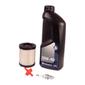 Ruohonleikkurin huoltosarja alkuperäisillä Husqvarna-osilla. Sisältää moottoriöljyn, sytytystulpan, polttoaineen-, öljyn ja ilmansuodattimet. Sopii mm. R 216, TC 138, TS 138, TS