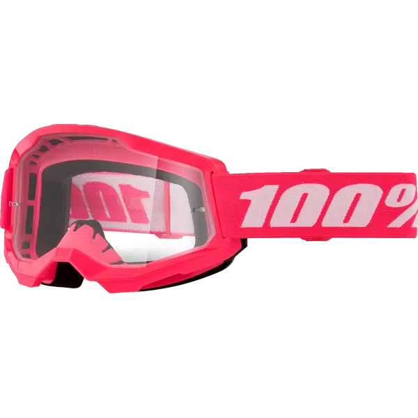 Strata 2 pinkillä kehyksellä on pirteä, kirkaslinssinen ajolasi niin mopoiluun kuin motocrossiinkin. Silikoninauhan valkoiset yksityiskohdat parantavat näkyvyyttä.