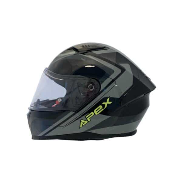 Apex moottoripyöräkypärä FI100 Valencia, musta / harmaa / keltainen