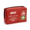 DIN13167 standardin täyttävä, kompaktisti pakattu ja erottuvan punainen ensiapulaukku moottoripyöräilijälle.