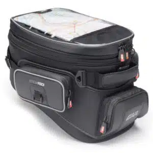 Tanklock -kiinnitteinen, laajentuva 25 litrainen tankkilaukku karttataskulla