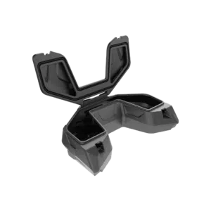 The case can be complimented with one or two 5 liter canisters. This configuration doesn’t impair the balance of the ATV and allows you to confidently maneuver and conquer routes of any complexity. Each can is mounted on the lid of the box with the quick-release fastener.