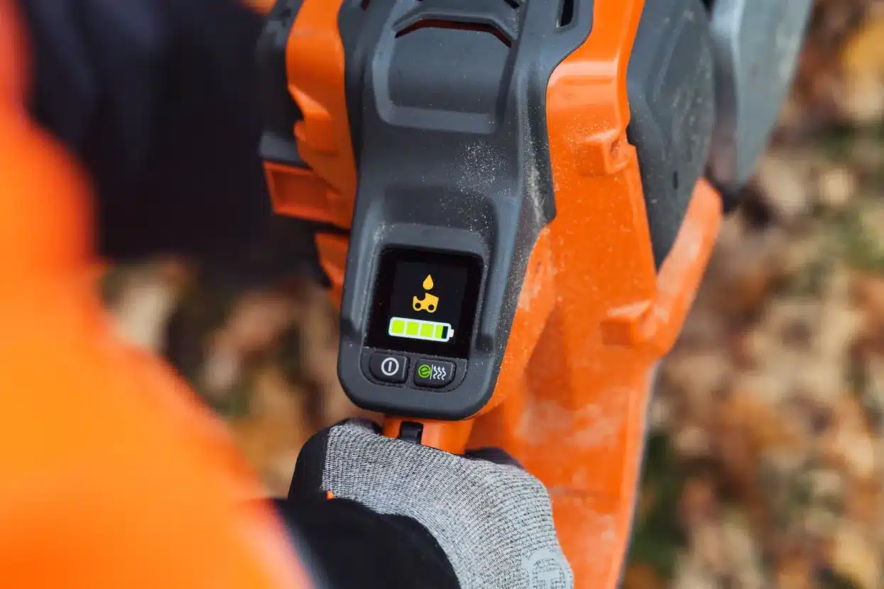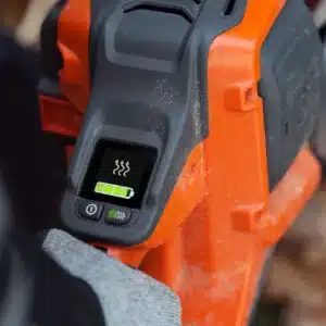 Moottorisahassa on uusi graafinen näyttö, jossa on kattavat tiedot akun varaustasosta ja tuotteen kunnosta. Lisäksi näytöltä on helppo hallita lämpökahvoja ja SavE™-tilaa, mikä takaa tehokkuuden ja käyttömukavuuden.