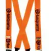 Nahkasoljin varustetut olkaimet. Tarkoitettu vyötärömallisiin housuihin, joissa napit olkaimia varten. Erikoisleveät, säädettävä pituus.