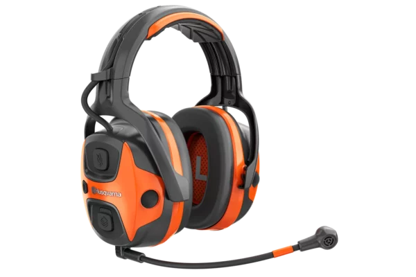 Husqvarnan erityisesti puunhoitotiimeille suunnitteleman, kestävän ja mukavan kuulonsuojainjärjestelmän kahteen suuntaan toimiva sisäpuhelin mahdollistaa jopa 10 hengen välisen samanaikaisen keskustelun.