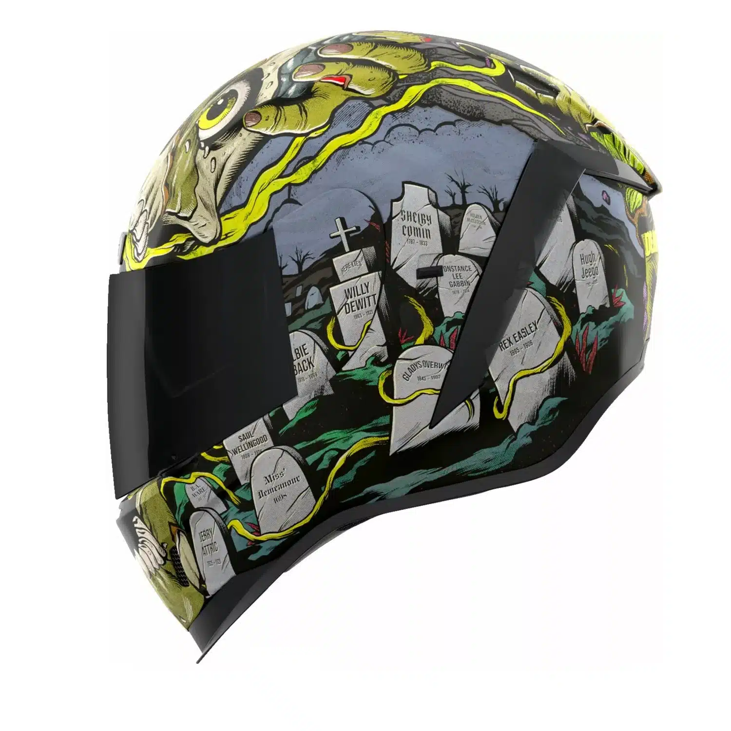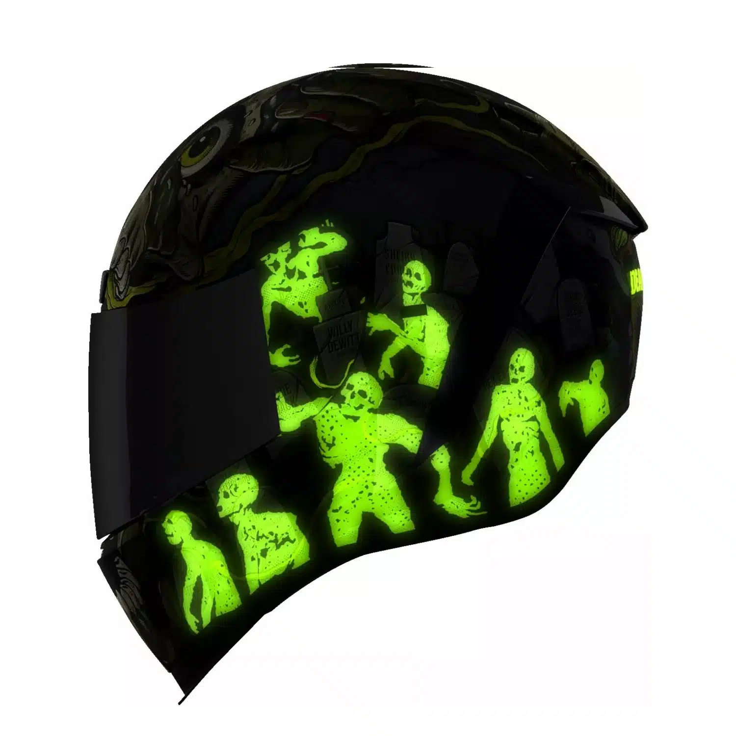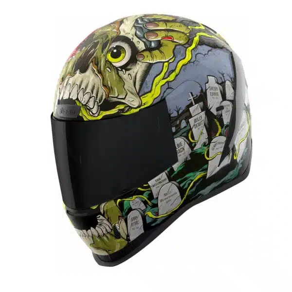 Todella näyttävä Icon Airform kypärä kahdella visiirillä ja uusimmalla turvallisuusteknologialla, sekä upealla pimeässä hohtavalla grafiikalla.
