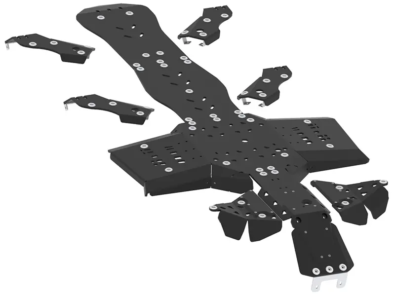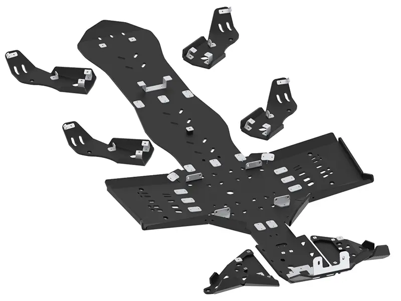Protects the whole bottom and front part of the chassis and front, middle & rear A-arms.Designed and constructed for best possible protection and to keep the maximum ground clearance, skid plate follows the frame / bodyshape best possible way.Additional, bolted front nose part reinforcement plate.Holes for easier washing and mud draining. Holes on footwell / footrest area follow the oem plastics pattern.Holes for oil changing.Holes for IB Mid-mount adapter.Compatible with IB front mount adapter.Detailed installation instruction and full mounting hardware included.This will NOT fit the 2-up 6×6 MAX model version of this vehicle (available as a separate product)!