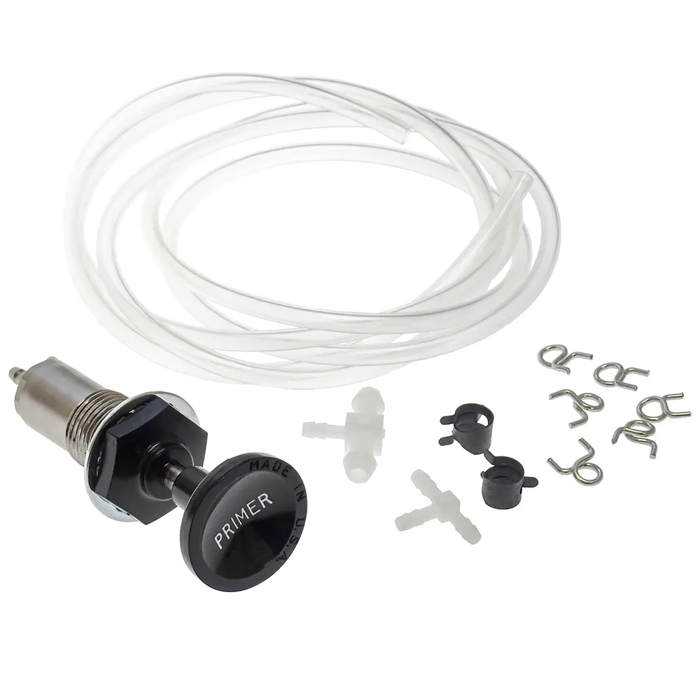 Täydellinen primer-pumppu sarja joka sisältää tarvittavat letkut, t-haarat, kiristimet ja klemmarit.
