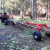 Strong steel, square tube chassis material 50 x 50 x 3 mm.Enables to transport logs without dragging and damaging the environment, which also helps to keep logs clean.Rear support is equipped with the log hanging system with chains and telescopic ’turn-over’ construction to lift and carry the logs.Complete user guide & safety instructions included.