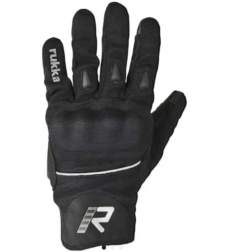 Rukka Active -sarjan moottoripyörähanskat, jotka joustavat juuri sopivasti parhaan istuvuuden takaamiseksi. Kämmenessä ja sormenpäissä on lisätarttumapinta, sekä etusormessa ja peukalossa kosketusnäytön käytön mahdollistavaa materiaalia. Ajohanska on notkeutensa ja muiden ominaisuuksien vuoksi saavuttanut suuren suosion erityisesti adventurekuskien parissa.