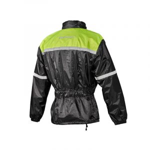 Hillityn värinen sadeasu pitää sinut kuivana ja erottuu heijastavien yksityiskohtien avulla liikenteestä. Hyvät säätövarat!