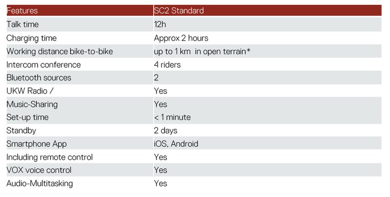 SC2 Standard tarjoaa jopa neljän henkilön välisen yhteyden (LJ-way Intercom), HD-tason kaiuttimet ja mikrofonin, kehittyneen melunvaimennusteknologian sekä sisäänrakennetun FM-radion. Laite hyödyntää Bluetooth 5.1 -tekniikkaa ja mahdollistaa yhteyden jopa 1 kilometrin säteellä avoimessa maastossa.