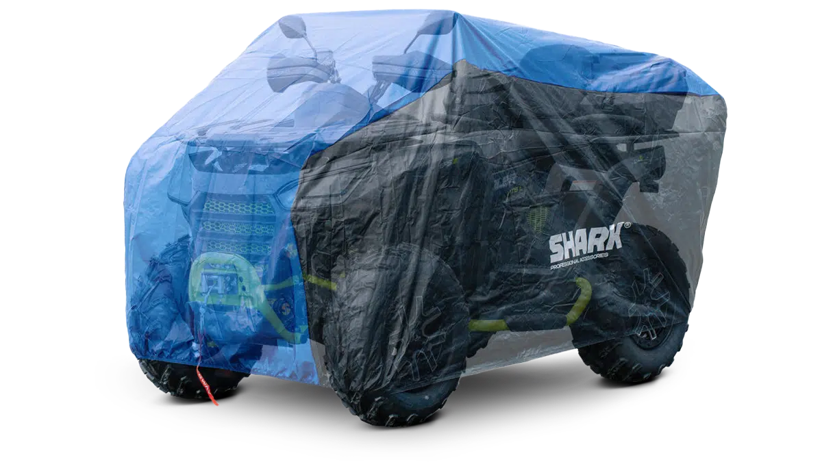 Suojaa mönkijää sateelta, pölyltä, UV-säteiltä, lumelta jne. Helppo asentaa kiristysnyörillä. Sopii mönkijöille, joiden pituus on enintään 210 cm, ohjaustangon korkeus noin 130 cm ja ohjaustangon leveys enintään 120 cm.