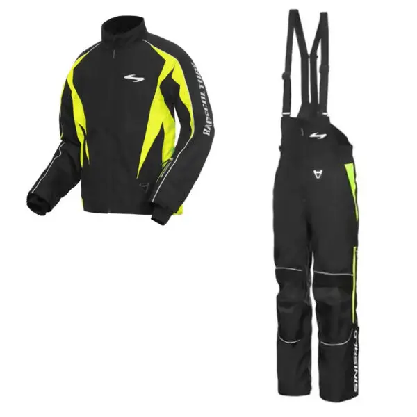Sinisalon erittäin ohut, vuoreton kuoritakki ja kuorihousut moottorikelkkailuun. Soveltuu loistavasti myös moottoripyöräilyyn. Kulutusta kestävä 450D-polyesterikangas. Väljä mitoitus jättää tilaa suojille ja sisätakille.