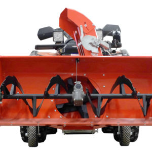 Universal telescopic adjustable, strong square tube push frame allows installation to most 4×4 ATV machines. The push frame is fixed to the rear hitch ball and with the adjustable chains to the ATV front arms. Installation takes 5-10 minutes.360 degrees rotating wheel carriers with 4” wheels to carry the weight of the snow blower. An ATV is used only to push the machine.Control panel for ejection tube movement with stop button to shut off the blower engine.Working position and transportation position (set with ATV winch).Easy to use belt tensioner, fast removal and installation of the clutch belt, if needed.Protective shaft bolts against excess load in rotor shaft movment.Comes with installation and user manuals.