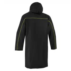 Pitkä lämmittelytakki, jossa reilusti tilaa sponsorilogoille. Peräti 200g toppaus!