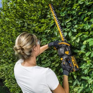 61 cm laserhiottu kaksoisterä ja 180° kääntyvä kahva takaavat täydellisen leikkuun. Kahva voidaan asettaa kolmeen eri asentoon pysty-, vaaka- tai sivuttaisleikkuuta varten, mikä mahdollistaa käyttäjän käsivarren ja ranteen pitämisen luonnollisessa asennossa.