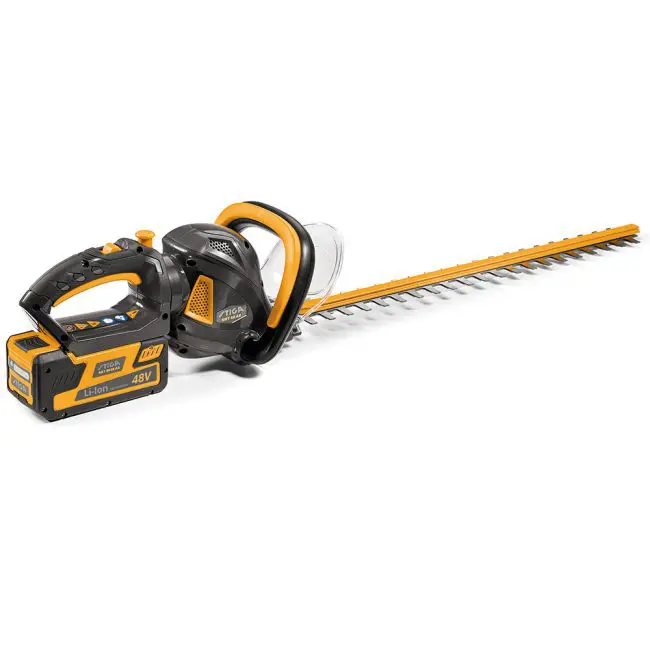 STIGA SHT 48 AE -pensasleikkurissa on tehokas 2,0 Ah litiumioniakku, jonka avulla voit työskennellä täysin vapaasti ja mukavasti. Akku mahdollistaa vähäisen tärinän ja huoltotarpeen sekä hiljaisen käyntiäänen ja nollapäästöt.