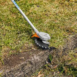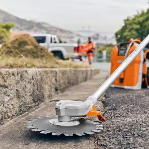 Toimii kahden limittäisen terälevyn yhdistelmällä – minimaalinen irtokivien, leikkausjätteen jne. materiaalin sinkoutuminen. Erinomainen mm. pysäköintialueilla ja muilla tarkkuutta vaativilla alueilla. Kestävä kulmavaihde, toimintavarma, helppo ja nopea teränvaihto.