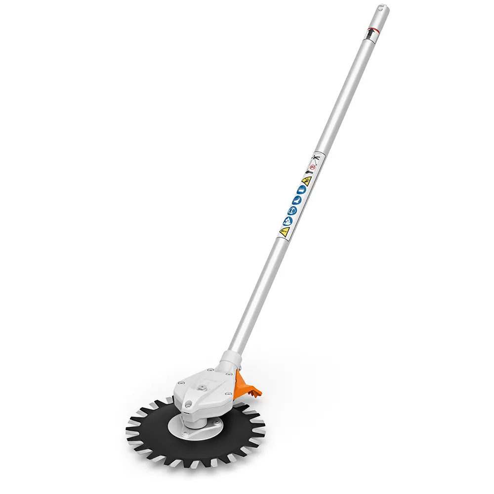 Toimii kahden limittäisen terälevyn yhdistelmällä – minimaalinen irtokivien, leikkausjätteen jne. materiaalin sinkoutuminen. Erinomainen mm. pysäköintialueilla ja muilla tarkkuutta vaativilla alueilla. Kestävä kulmavaihde, toimintavarma, helppo ja nopea teränvaihto.