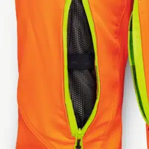 Toiminnallinen materiaaliyhdistelmä, jossa on edessä tukeva ulkokangas ja takana erittäin joustava joustava stretch-materiaali, sekä joustava ProElast-sisäosa haarojen alueella ja leikkaussuojakerroksen joustava liitos housujen ulkokankaaseen tarjoavat runsaasti liikkumisvapautta.