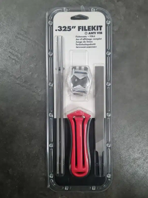 Teroitussarja Jonsered .325″ 1,3 mm. Kaksi pyöröviilaa, lattaviila, kahva ja viilanohjain.