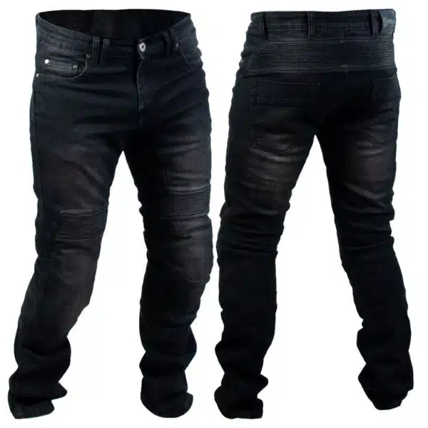Timelessin kestävät, mustavat kevlarfarkut CE-hyväksytyillä polvisuojilla ovat kuin luodut kesäisiin ajopäiviin. Kankaassa mukana käyttömukavuutta lisäävää stretchiä.