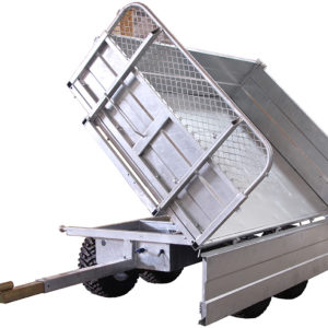 360° rotating towbar.Tandem axle / 4 wheels.Removable side panels.Cargo box dimensions 1300 x 2000 x 400 mm.Cargo box with hydraulic 3-way tilt.Cargo box height extensions ( optional ).Tiltable cargo box ( tip angle 55° ).Adjustable support leg ( optional ).