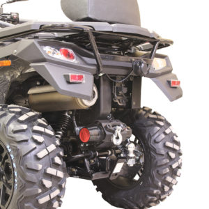 Model specific rear winch mounting kit for WARN, COMEUP or BRONCO winches with mounting bolt pattern 76x124mm (3″x4,87″) to install on Kymco MXU 700 (2020+) vehicles.